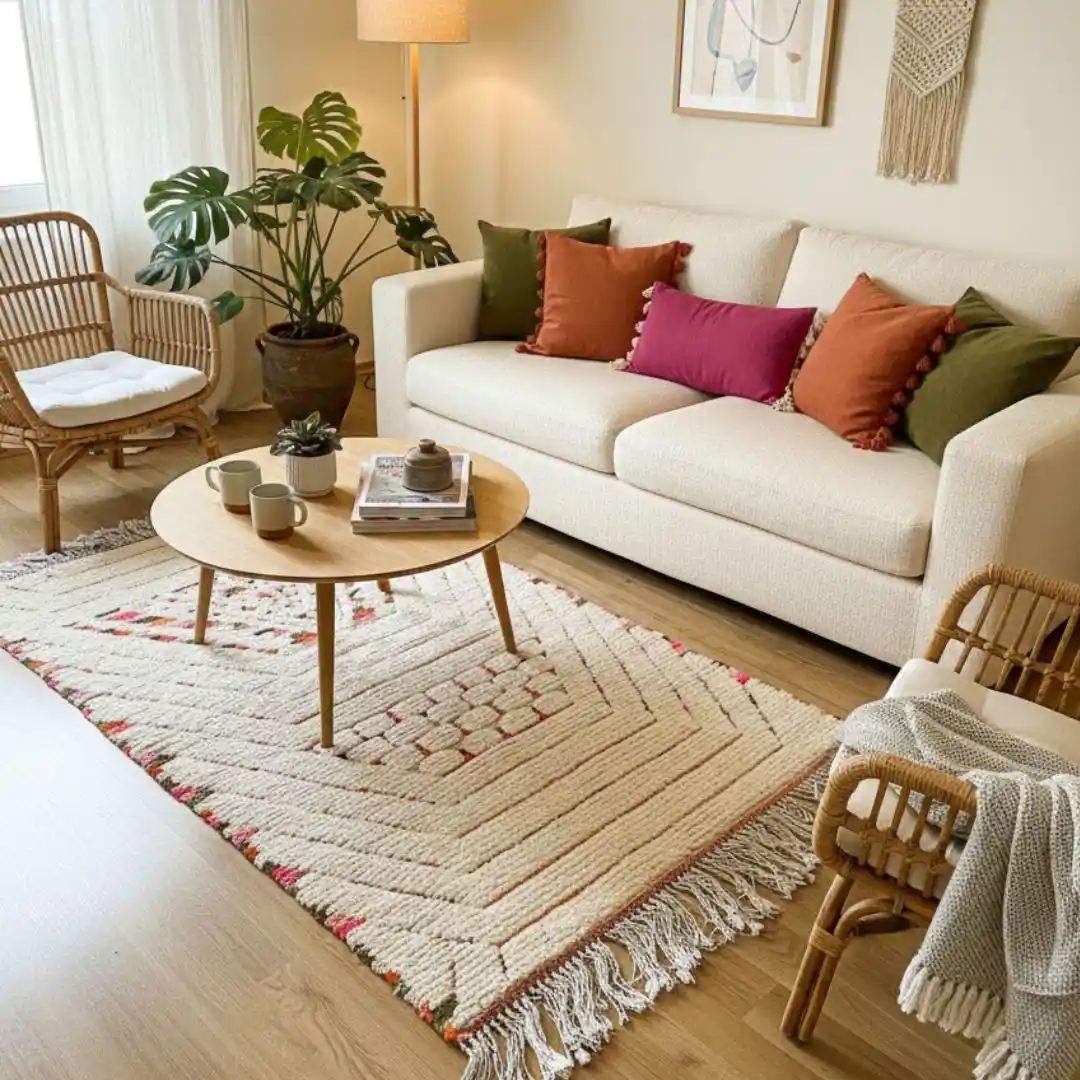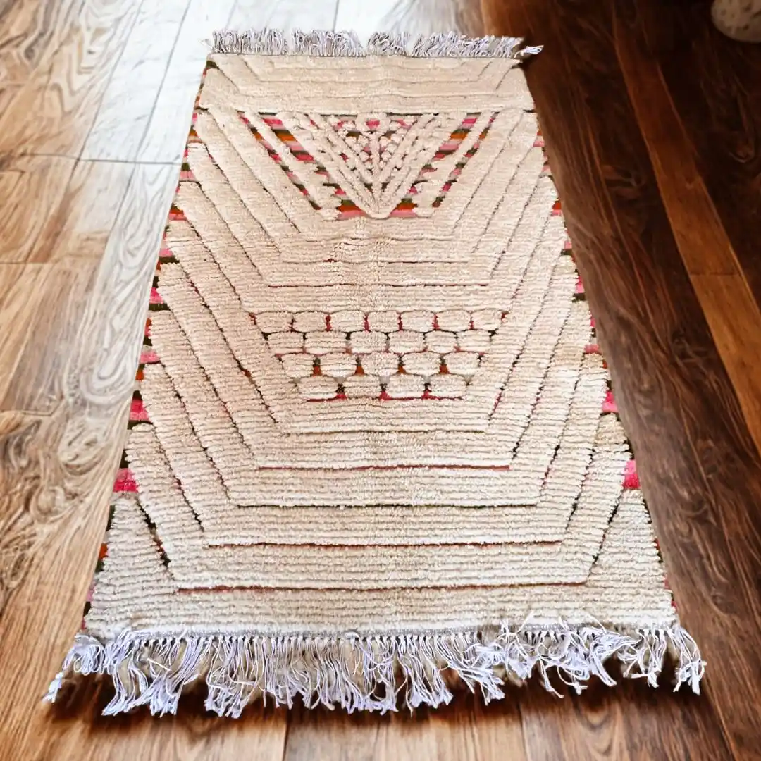 Marokietiškas vilnonis kilimas „Jaukumo oazė” – jaukumo ir autentiško dizaino lobis jūsų namams.